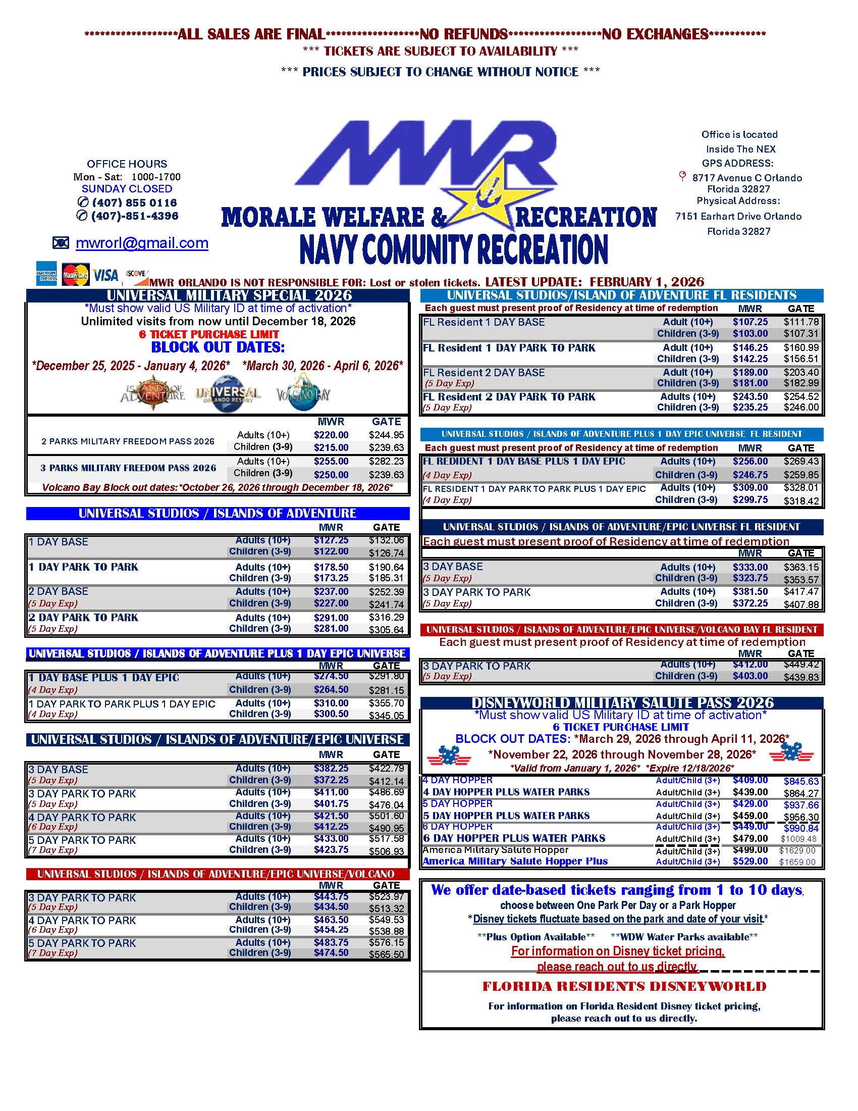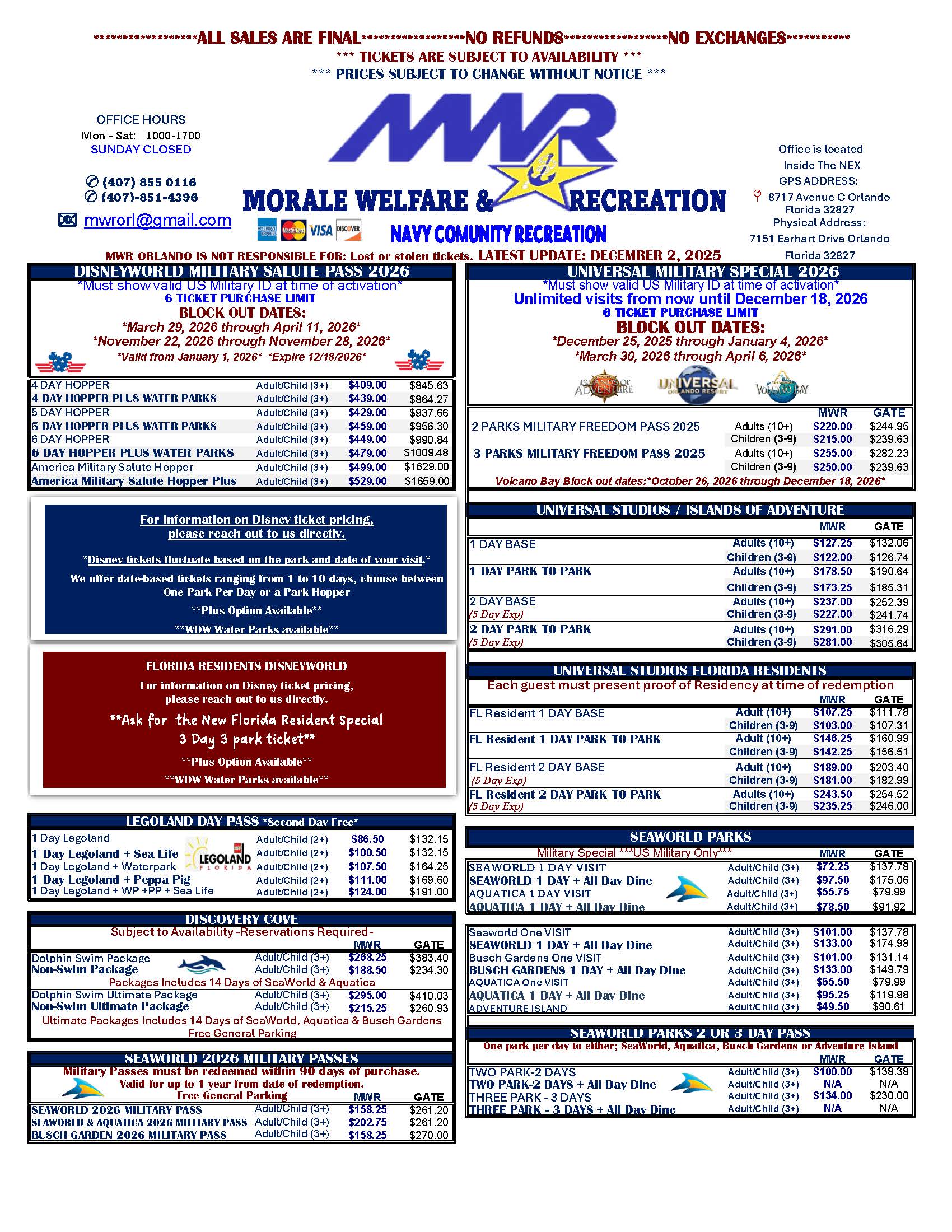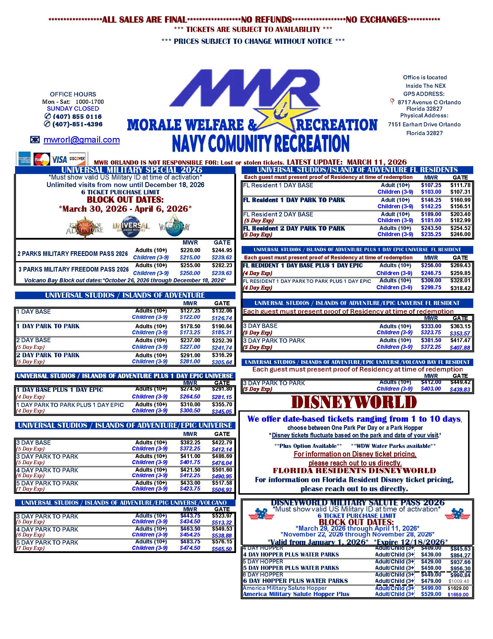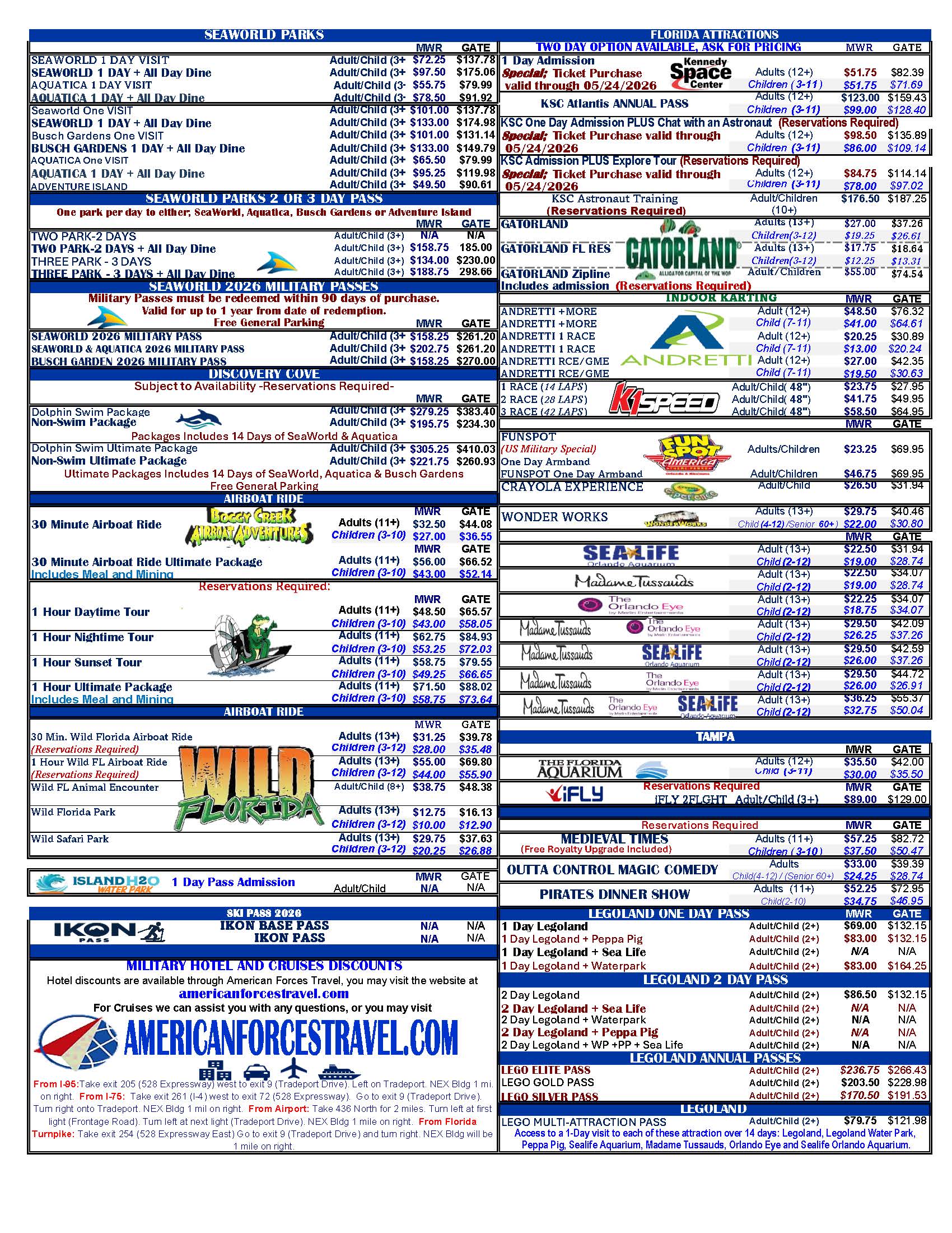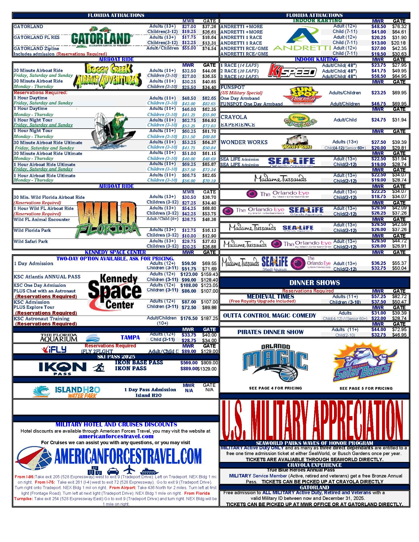 Click here to view the MWR Facebook page, where deals are often posted